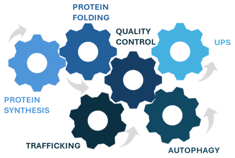 ProGeLife développe des candidats-médicaments capables de réactiver les voies naturelles de nettoyage, de recyclage et d’adressage des protéines, afin de restaurer l’équilibre cellulaire (homéostasie).