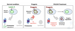 - Réduction de la quantité de progérine dans les cellules de patients.